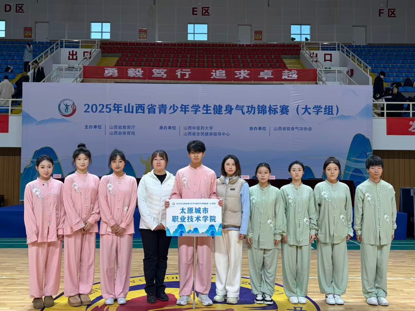 健身气功,作为中华民族优秀的传统体育项目,源远流长,底蕴深厚。11月21日至23日,山西省首届青少年学生健身气功锦标赛(大学组)在山西中医药大学拉开帷幕。来自全省22所院校,46支代表队的184名运动员共同出席。学院选派白丽虹老师、曹颖老师为教练,带领8名学生参赛。经过与山西文化旅游职业大学、晋中师范高等专科学校等学校同场激烈地竞争下,同学们在赛场上奋力拼搏。由李泰谦同学、李金美同学、王晨杰同学、杜雨琦同学组成的团队荣获大学B组大舞三等奖、大学B组五禽戏三等奖。8名同学的出色表现荣获团体总分第六名和体育道德风尚奖。