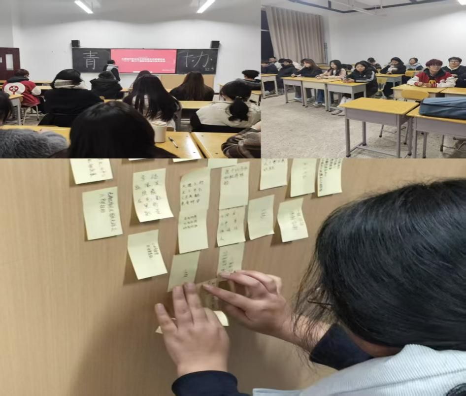 在12月6日,通过播放优秀志愿服务短片,生动讲述志愿活动的先进事迹,对活动成员进行了深入的思想启迪。活动尾声精心设置的“心声便签”环节,成为了一道温暖且闪耀的亮点。在此环节中,学生们积极拿起便笺纸,郑重写下对志愿服务的美好期待。