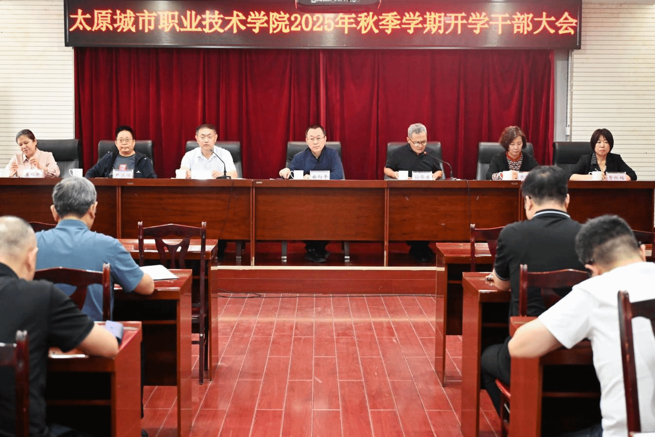 孙华东院长传达了2025年太原市新学年重点工作部署会议精神,并结合学院实际提出贯彻意见。同时,作了题为《强化责任担当 汇聚奋进力量 开创学院事业发展新局面》的报告。他指出,一要强基础,筑牢可持续发展根基。进一步加强实训教学建设、校园网络和安全设施建设,完善学生生活设施和加强图书馆藏书建设。二要填空白,拓展事业发展新领域。积极布局智能制造、低空经济等新兴专业领域,大力开拓继续教育市场,开发新的培训项目,积极探索国际交流合作新路径。三要补短板,破解发展瓶颈制约。重点补齐师资队伍短板、科研短板和管理短板。四要固平台,强化资源整合效能。巩固和拓展校企合作平台,完善专业群资源库建设,建好教师发展平台,优化学生发展平台。五要抓内涵,提升专业建设水平。深入推进行业企业调研,对接职业标准和工作过程,深化教学模式改革。六要纠偏差,回归职业教育本质。坚持实践主导的教学模式,秉持“招生—培养—就业”一体化理念,将资源配置重点转向内涵建设。七要求规范,提升治理能力现代化。推进治理体系和治理能力现代化,规范教学管理、学生管理和财务管理。八要重过程,强化办学质量监控。建立人才培养全过程质量监控机制,强化教学过程管理,加强项目建设过程管理,完善预算执行过程监控。九要推双创,培育创新发展动能。将创新创业教育融入人才培养全过程,鼓励教师带领学生开展技术创新和创业实践,积极组织参加各类创新创业大赛。十要提质量,实现发展本质追求。牢固树立质量意识,聚焦人才培养质量,提升师资队伍质量,提高管理服务质量,建立健全以质量为导向的激励机制。他强调,近期要着力抓好四项重点工作,一是安全稳定有序,全力做好秋季学期开学工作。二是扎实做好巡察整改“后半篇文章”。三是做好学院“十五五”教育事业发展规划的编制工作。四是做好学院办学条件达标工作。