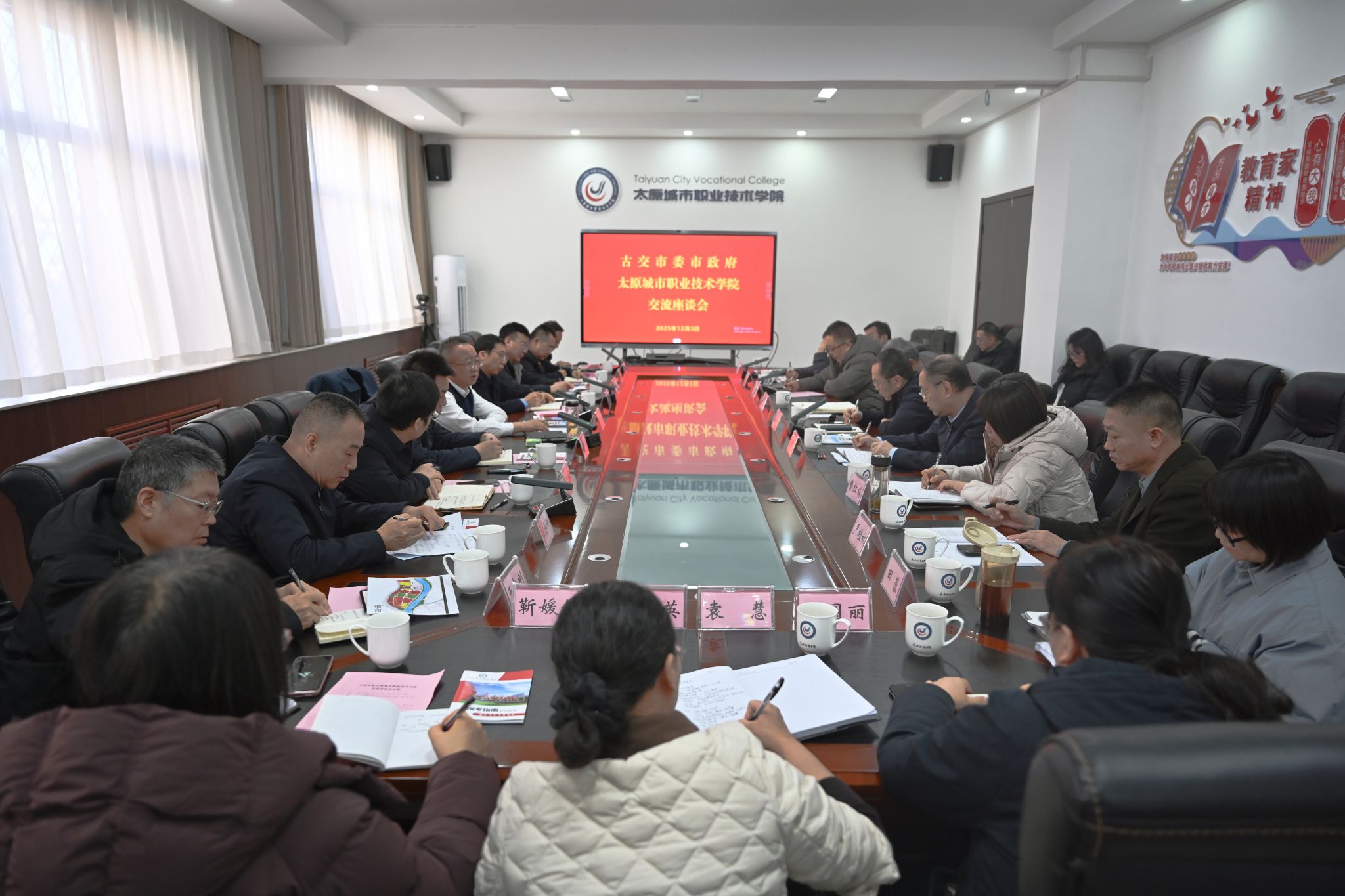 12月3日上午,古交市委书记、市长张麒带队赴太原城市职业技术学院,就深化校地合作进行座谈交流。太原城市职业技术学院党委书记曲向平出席会议并讲话。
