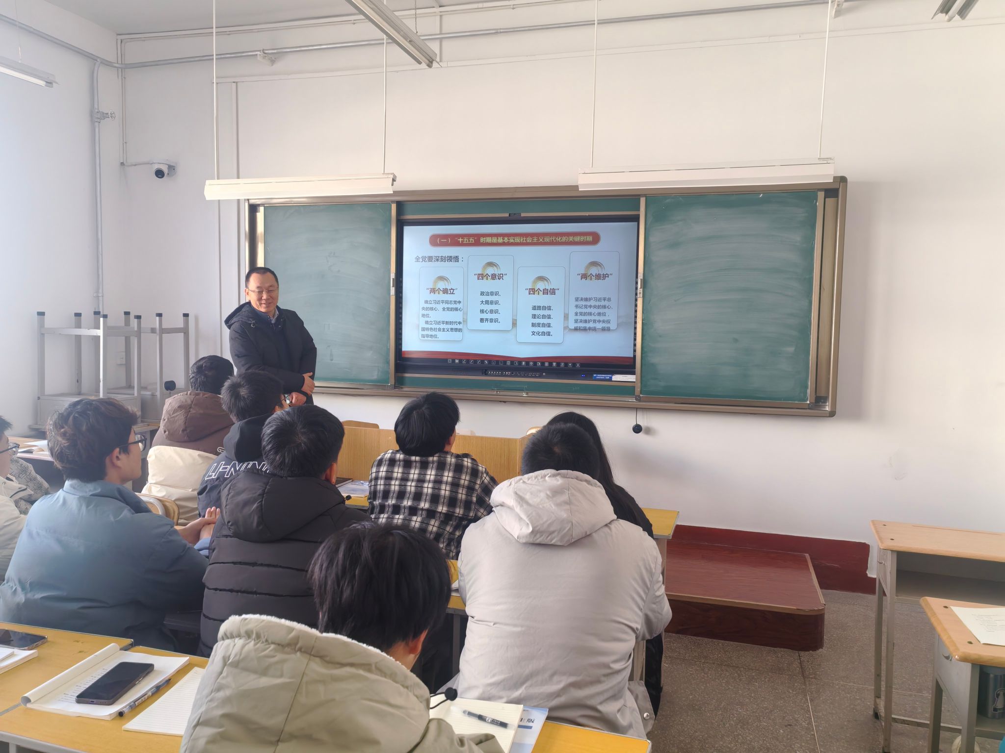 曲向平书记关注青年学子普遍关心的理论与实践问题,结合国内外形势、职业教育发展动态和学院实际,在两个多小时的授课中,同学们踊跃互动发言,曲向平书记对提出的问题逐一进行细致解答和引导,既有理论高度,又充满关怀,提出了学习实践要求。同学们纷纷表示,这堂思政课“解渴”又“暖心”,不仅加深了对国家大政方针的理解,更明确了自身肩负的责任与努力方向。
