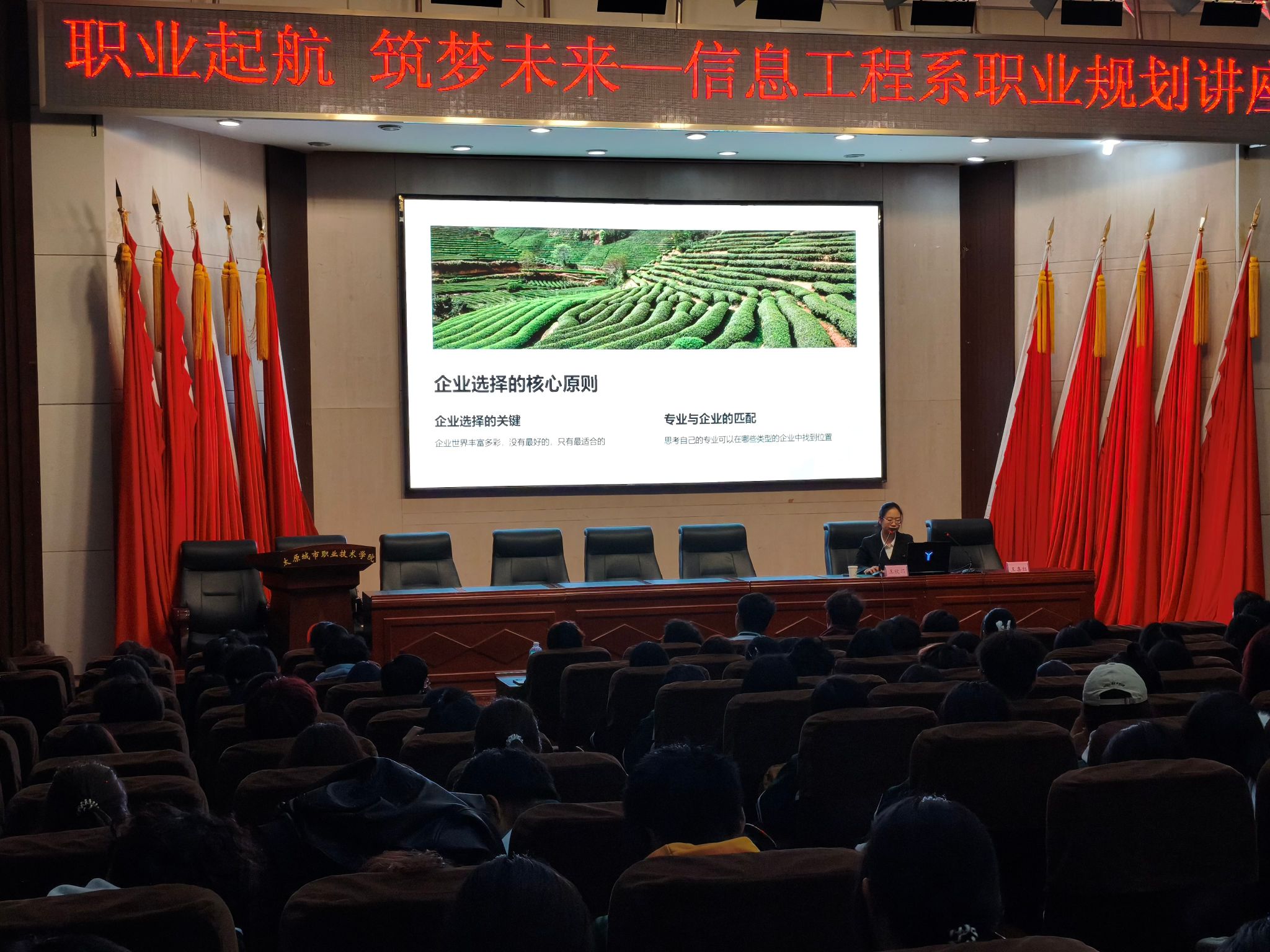 为帮助学生树立科学的职业规划意识,提升就业竞争力,明确未来职业发展路径,11月19日中午,信息工程系在大报告厅举办职业规划专题讲座。