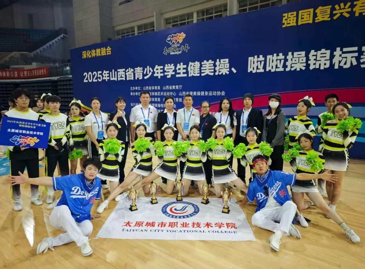 7月15日至18日,由山西省体育局、山西省教育厅主办的2025年山西省青少年学生健美操、啦啦操锦标赛在山西省大同市举行,吸引了全省多所高校和专业队伍参赛。学院选派曹颖领队,王璐、乔嘉宇为教练员,带领16名运动员参赛。全体队员凭借出色发挥,在集体花球规定动作、自选动作和双人花球、双人街舞等五个项目中一举斩获五项冠军。大赛组委会领导亲切慰问团队成员,对大家在比赛中的出色表现和专业素养给予高度赞扬。