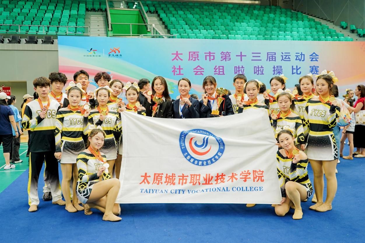 7月21日至22日,太原市第十三届运动会社会组啦啦操比赛在太原滨河体育中心火热开赛。学院选派曹颖领队,王璐、乔嘉宇为教练员,带领16名运动员参加比赛。全体队员默契配合,在集体花球规定动作初A、规定动作初B和双人花球自选动作三个项目中荣获冠军,在双人街舞自选动作项目中荣获季军,学院荣获体育道德风尚奖。担任本次大赛裁判员的杨帆老师也为队员带来了温暖的鼓励和专业的指导。