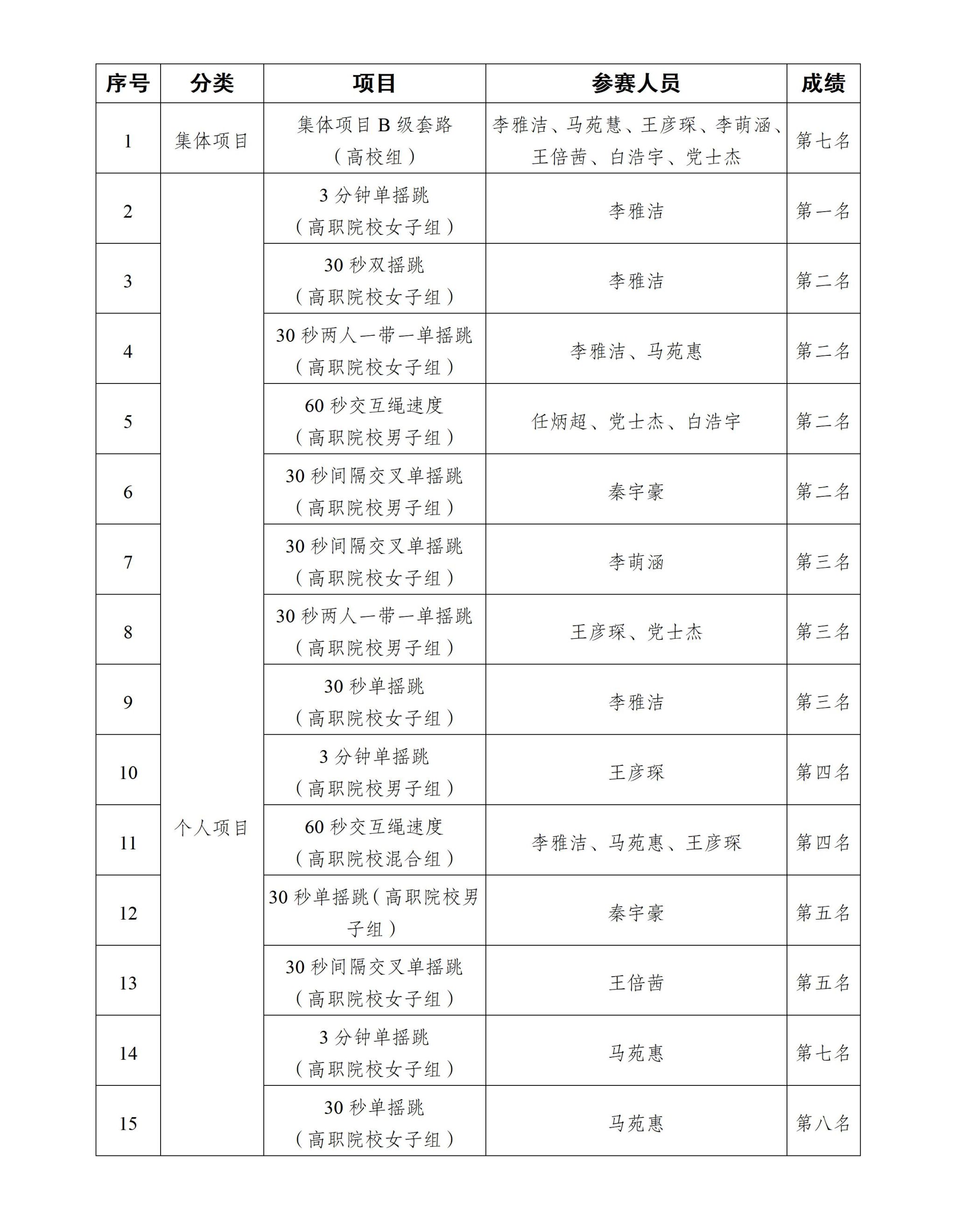 优异成绩的背后,在于运动员们日常辛勤的训练,离不开跳绳社团丰富的备战经验,更离不开教练们对每位队员个性化的训练计划。运动员们在此次比赛中也感受到赛事的氛围,与山西省不同地市的优秀运动员们零距离接触,既开阔了眼界又提升了技巧。学院跳绳队将继续砥砺奋进,持之以恒、努力训练,不断提升自身竞技水平,为学校赢取更多的荣誉。