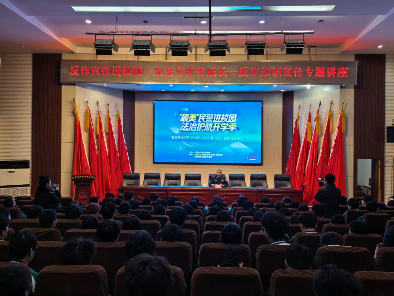 为切实增强学生安全防范意识,有效预防和遏制电信网络诈骗案件在校园内发生,保障学生人身财产安全,筑牢校园反诈防线,营造平安和谐的校园环境,近日,学院特邀“山西省公安厅最美基层民警”汇丰派出所王强副所长走进校园,在学院报告厅举办了一场题为“反诈宣传进校园·安全守护伴成长”的反诈知识专题讲座。讲座吸引了全院各年级师生代表踊跃参与,现场座无虚席、气氛热烈,大家认真聆听、积极互动,共同筑牢反诈思想防线。