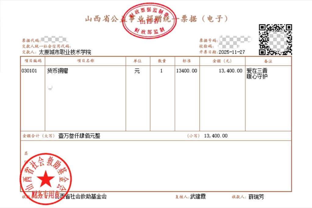 太原城市职业技术学院2025年“中华慈善日” 送温暖、献爱心及“爱在三晋 暖心守护”捐款名单 |