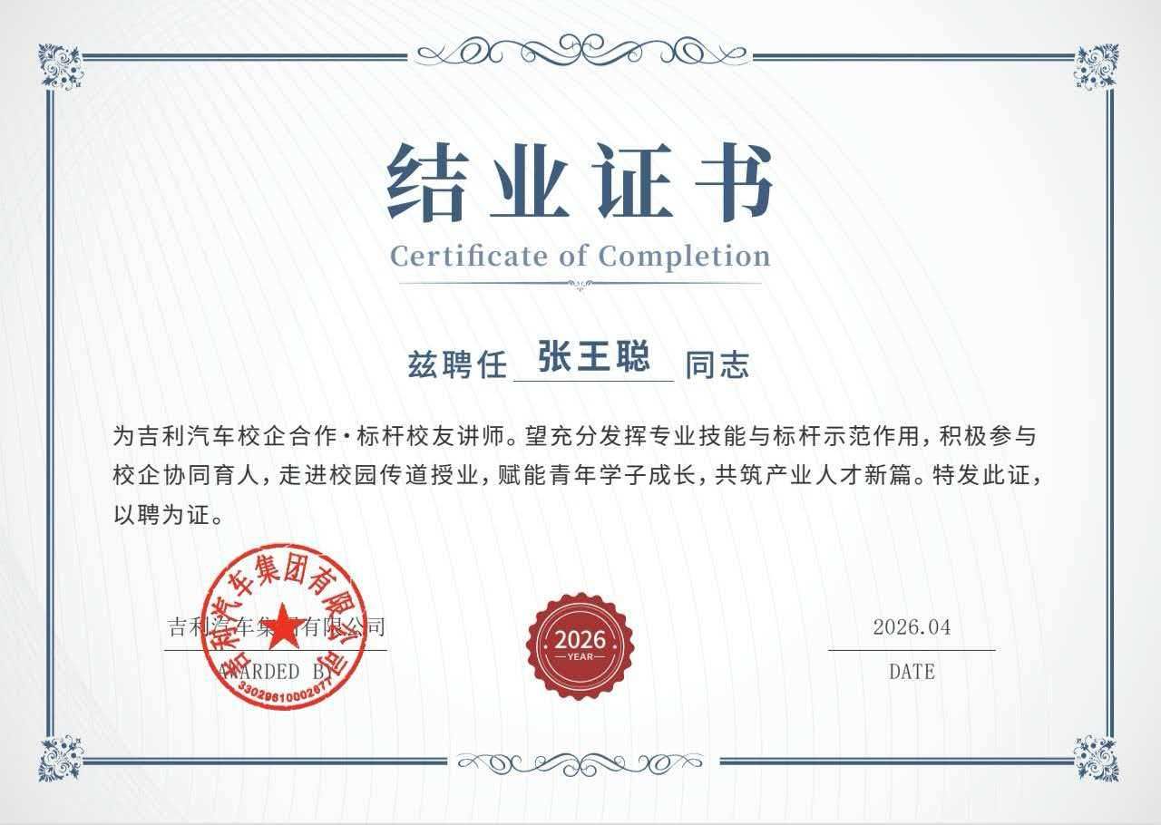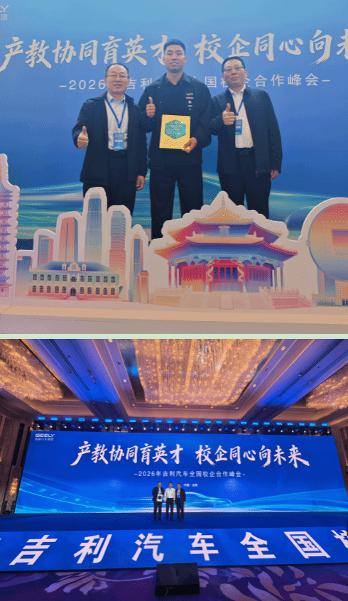4月20日至21日,2026年吉利汽车全国校企合作峰会在沈阳举行。本次峰会由吉利汽车控股(杭州)有限公司主办,机械行业吉利汽车产教协同人才培养联盟承办,以“产教协同育英才,校企同心向未来”为主题,汇聚了政府领导、行业专家及全国各合作院校代表共襄盛举。学院主要领导应邀出席峰会,学院荣获“协同育人青竹奖”,2011级校友张王聪获聘为吉利汽车校企合作·标杆校友讲师,校企合作成果再获行业高度认可。