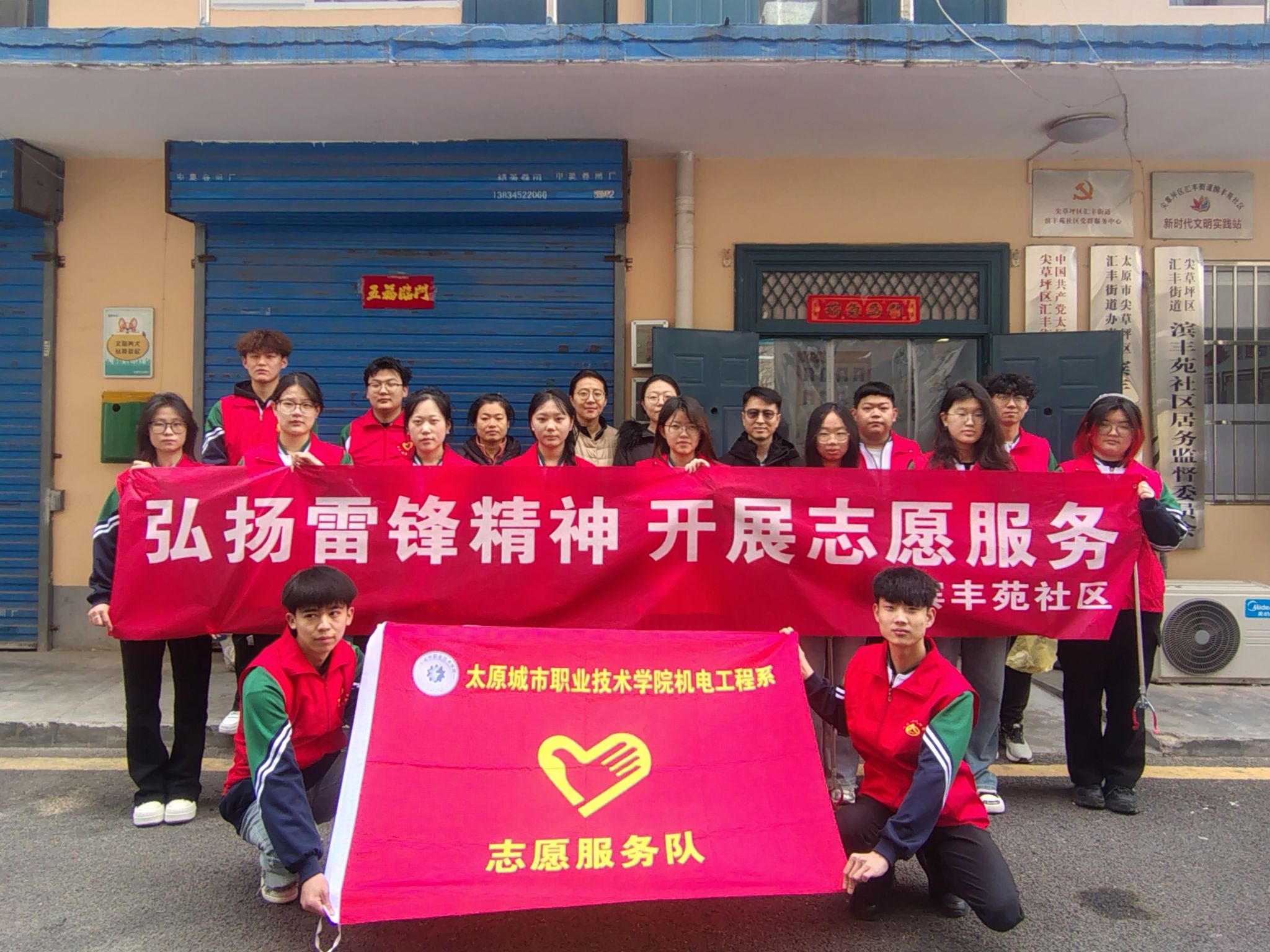为传承和弘扬雷锋精神,3月17日,机电工程系分团委志愿服务队走进尖草坪区汇丰街道滨丰苑社区,开展了以“弘扬雷锋精神,开展志愿服务”为主题的实践活动。